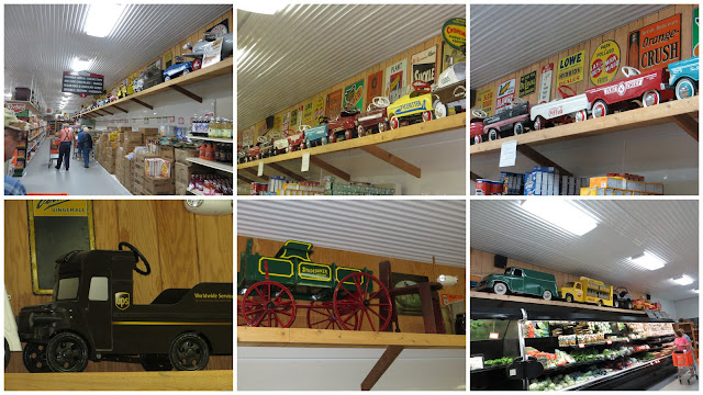 We did spend some time in Shipshewana. There is a very large flea market that is open on Tuesday's and Wednesday's. There are also a number of craft, souvenir type shops in town, along with a few bulk food stores and cheese/meat shops. Touristy yes, but some really good foods. We got some good bologna and more cheese. The one bulk food store had a super collection of old toy petal cars, wagons etc..